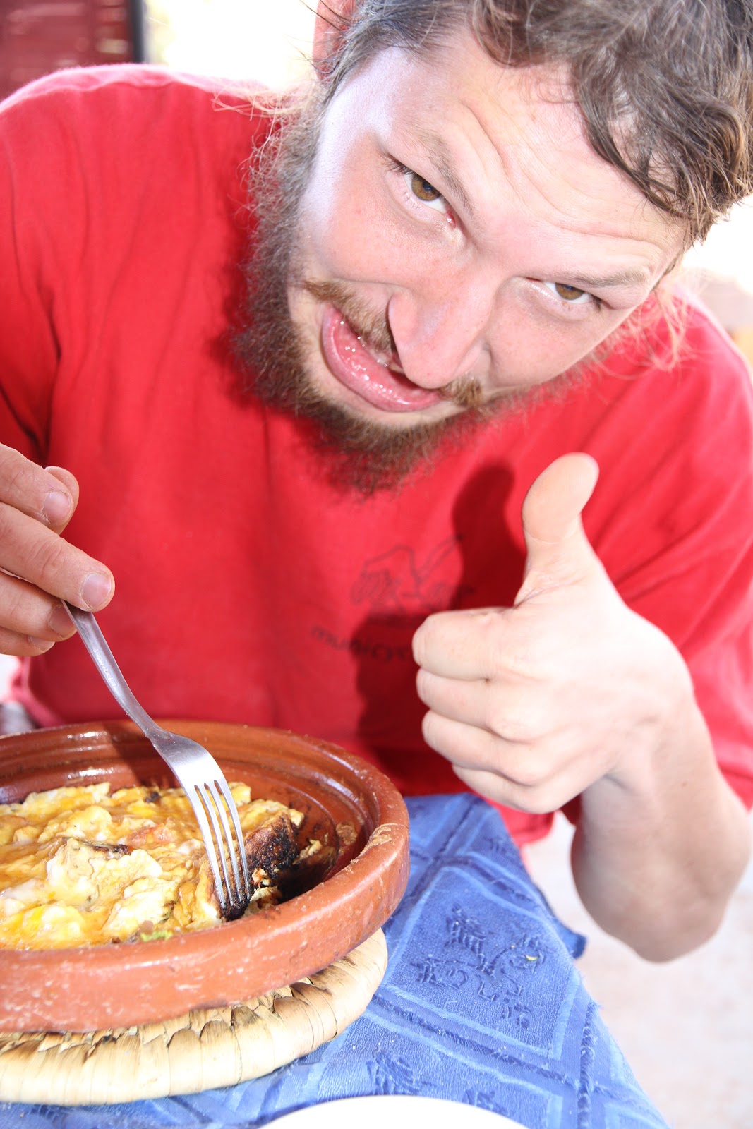 Beim Mittagessen bestellten wir jeweils zwei mal das gleiche Gericht und sahen zugleich das es ein richtig frisches Restaurant war da der Junge des Restaurants für jedes Ei einzeln zum nachbarlichen Bauernhof laufen musste. David bekam sein Leibgericht, ein Omlett das oben lebendig war und unten die Konsistenz von Steinkohle hat. Diese Ästhetik wollte David nicht zerstören und aß zum ersten mal in einem Restaurant nicht auf. Auch der Koch war ein kreativer Bursche und die zwei bestellten Pizza Magaritha wichen zu 300% voneinander ab.