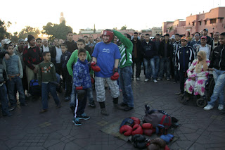 Für unsere ersten 100GB Filmmaterial mussten die Gassen und der Hauptplatz von Marrakesch herhalten. Es endete beinahe im Desaster, ein marokkanischer Straßenhändler David eine komplette Boxausrüstung anlegte. Umzingelt von Menschenmassen sollte er gegen den Boxmeister um sein Einrad kämpfen. David schmiss die Handschuhe weg und wir verließen fluchtartig den Platz um nicht windelweich geprügelt zu werden.